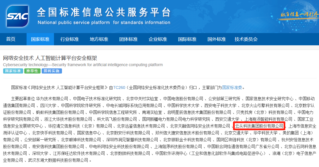 近日,國家標(biāo)準(zhǔn)GB/T 45958-2025《網(wǎng)絡(luò)安全技術(shù) 人工智能計算平臺安全框架》正式發(fā)布。該標(biāo)準(zhǔn)由全國網(wǎng)絡(luò)安全標(biāo)準(zhǔn)化技術(shù)委員會歸口管理,華為技術(shù)有限公司牽頭,云從科技作為核心起草單位之一,深度參與了標(biāo)準(zhǔn)制定工作。 這項將于2026年2月1日正式實施的國家標(biāo)準(zhǔn),為人工智能計算平臺建立了系統(tǒng)化的安全框架,規(guī)定了安全功能、安全管理和角色安全職責(zé),將有效應(yīng)對硬件漏洞、訓(xùn)練數(shù)據(jù)泄露、對抗樣本攻擊等新型安全威脅。